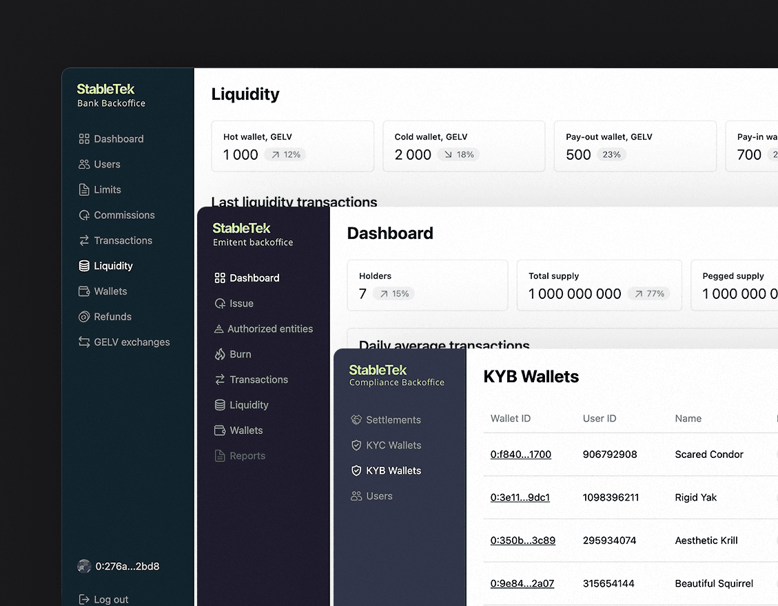 Comprehensive suite of services for digital financial ecosystems and CBDCs that enables not only issuing CBDCs and stablecoins, but also the digitization of real-life assets, with the whole suite of managing the assets in question.